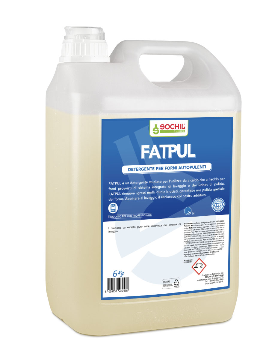 FATPUL è un detergente studiato per l’utilizzo sia a caldo che a freddo per forni provvisti di sistema integrato di lavaggio o dei Robot di pulizia.